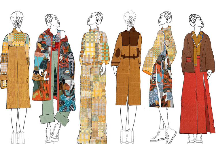 Final year Fashion student, Ellen Price, created a print design that can be found repeated throughout her collection. The designs stem from her research into the emotional turmoil of being trapped in addiction after gaining insight volunteering for a local charity in Holbeck.