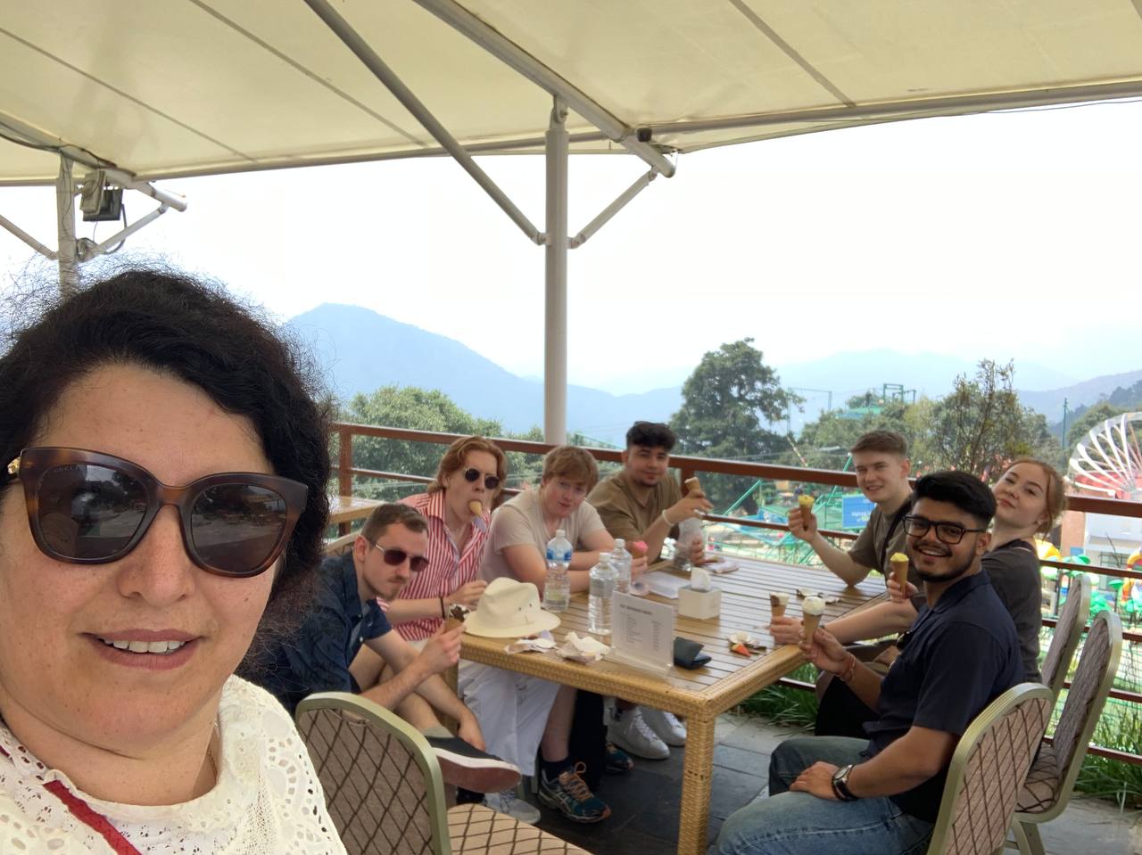 After two long days of working with The British College, we finally had a day to walk around Nepal and sightsee. TBC invited us out and showed everyone around for the day, providing transport and many ideas for our trip ahead. Although we had planned to visit three different places for the day, unfortunately, due to some unprofessionalism and lack of organisation on their part, we only managed to visit one place Chandragiri Hills. TBC funded everyone to be able to travel up in a cable car to the top of the hills and witness some amazing views. Unfortunately, I personally have had an overwhelming fear of heights and was unable to take part in this activity however, I sat in a café below and was treated amazingly by all of the staff where I got to sit back, relax, enjoy some hot drinks and take in the view.