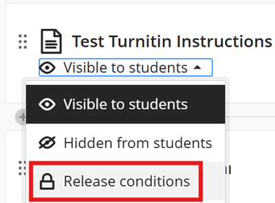 To apply release conditions, first locate the module item within the module and click on the drop-down arrow next to the current visibility setting.