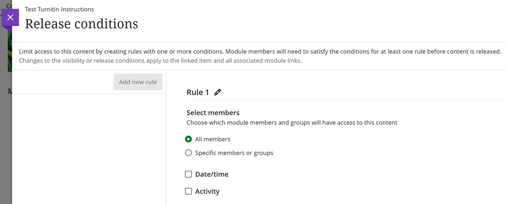 When release conditions are applied to module items, only users who meet your chosen rules will be able to view these items.