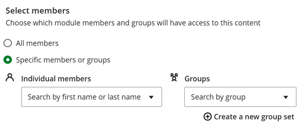 - Membership – Content is released to all module members, groups or specific individuals