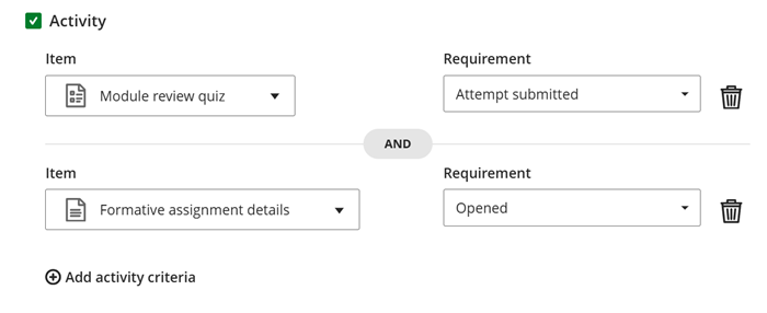 - Activity - Content is released when students interact with specified module content: