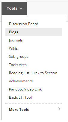 b. In a Content Area, hover your mouse over Tools and click. Blogs