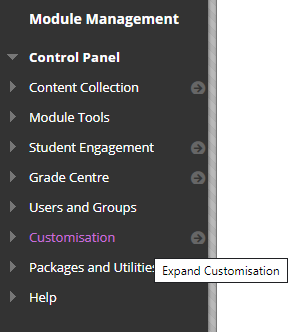 a. In a module's Control Panel (at the bottom left), click Customisation.