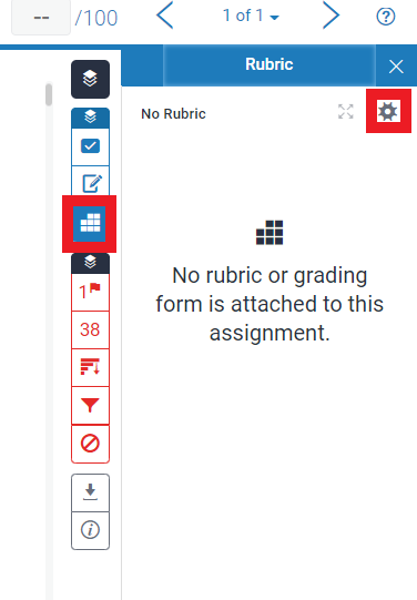 b. From the online grading toolbar, select the Rubric icon to open the Rubric side panel (right-hand side of assignment).